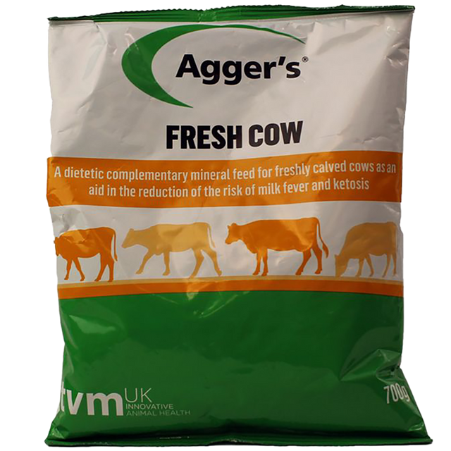 - Agger's Fresh Cow is a complementary feed for dairy cows to reduce ketosis and milk fever.