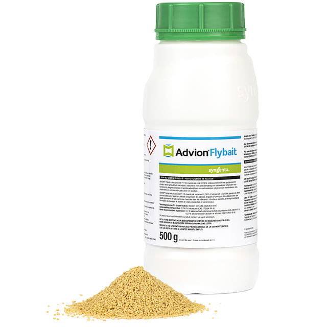 Advion Flybait 500 grams is a (NEW) ready-to-use granulate with which flies are combated in a targeted and effective way. A fly trap or bait box with 40 grams of Advion Flybait can combat around 80,000 house flies in 48-72 hours!